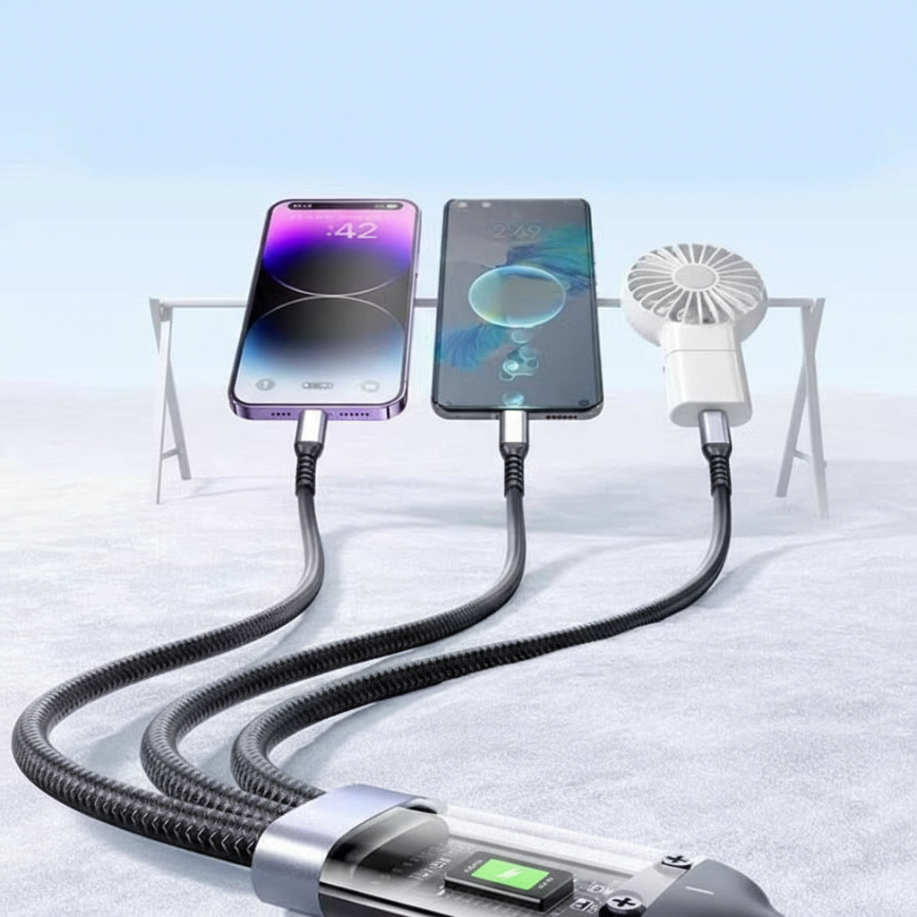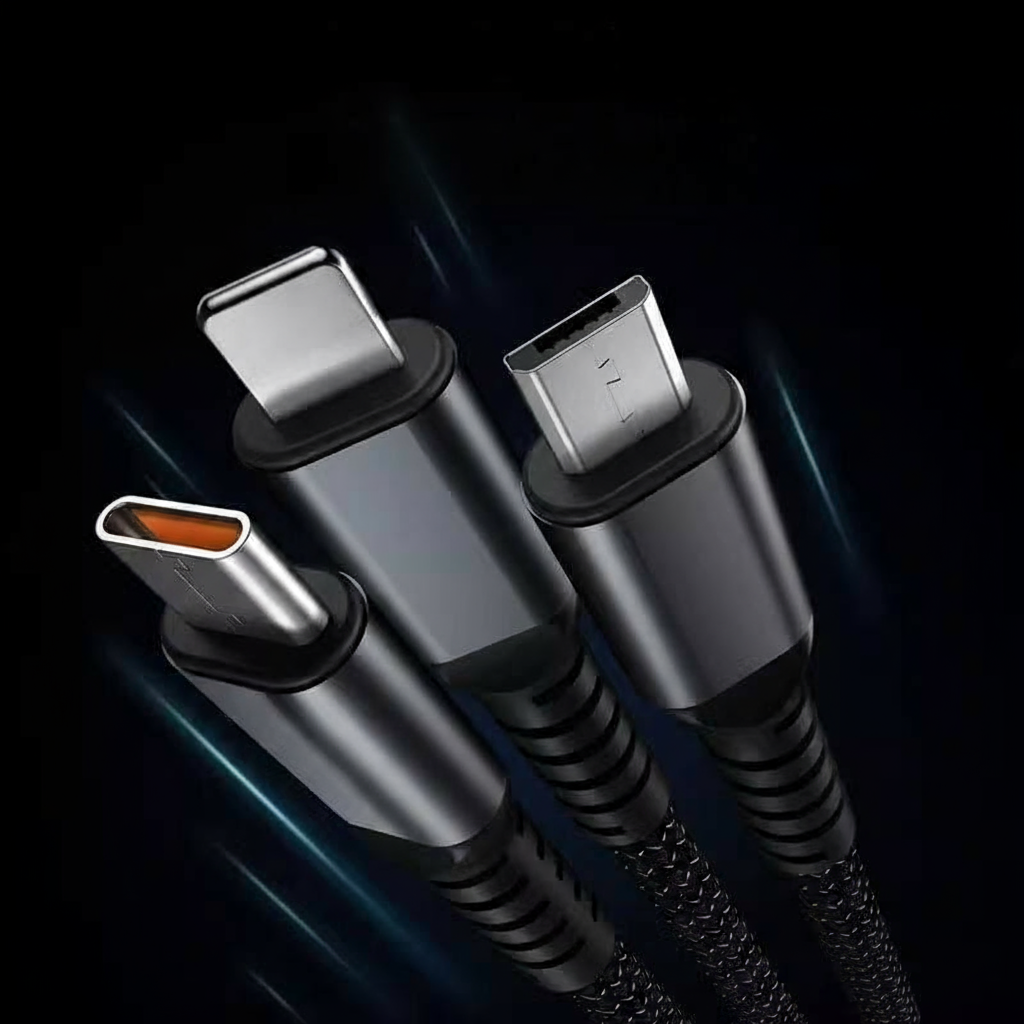 Equipped with USB Type-C, Micro USB, and Lightning connectors, this universal cable eliminates the need for multiple cords, allowing users to charge a wide range of devices with a single cable.